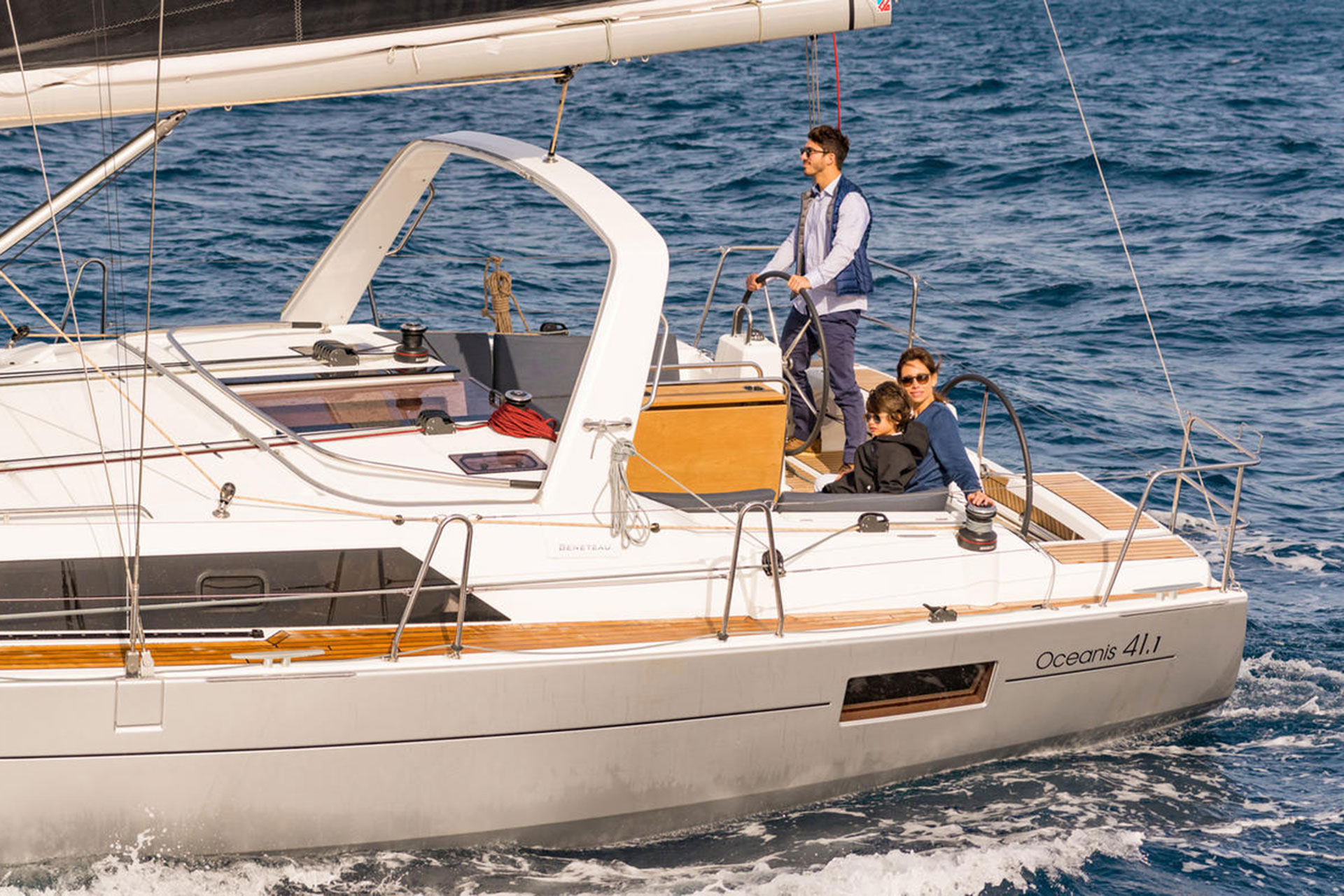 The Oceanis 41.1 is a distillation of performance at sea and on-board intelligence, offering wide scope for personalization. On a perfectly balanced chined-hull, there is no equivalent in cockpit space on any other boat this size.