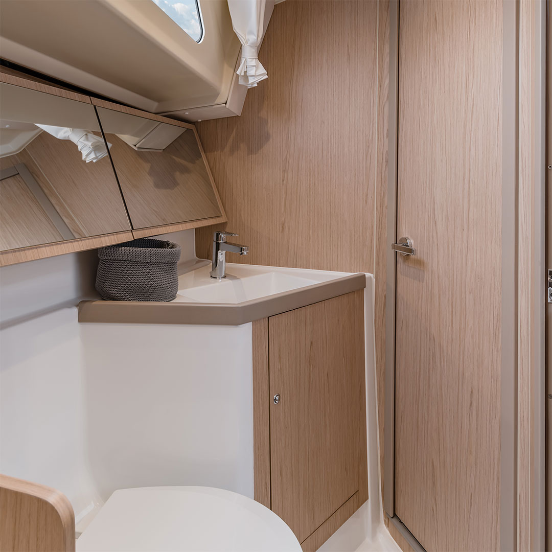 With a mast positioned further back, the Oceanis 41.1 has a sail plan that guarantees excellent balance under sail. Equipped with the Performance Pack (German System and set of Elvstrom sails), this cruiser promises comfortable sailing at very good speeds.